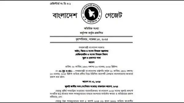 জুলাই সনদ বাস্তবায়ন আদেশের গেজেট জারি