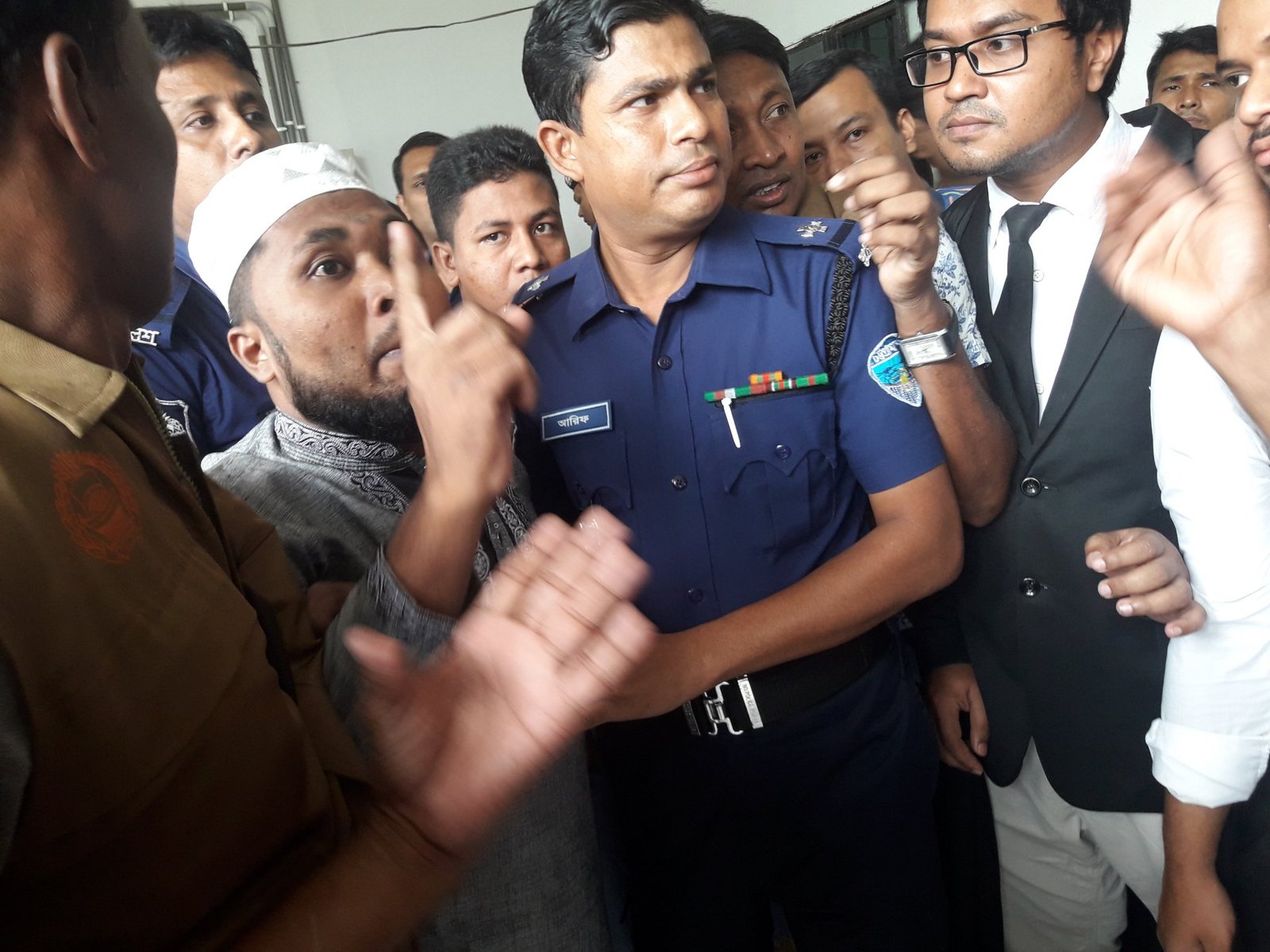 গতকাল বৃহস্পতিবার নারী ও শিশু নির্যাতন দমন ট্রাইব্যুনালের একটি এজলাস কক্ষে অবস্থানকালে এমনই দৃশ্য লক্ষ্য করা যায়। আসামিরা এ সময় বাদীপক্ষের আইনজীবীদের অশ্লীল ভাষায় গালাগালি করেন। পরে পুলিশ পাহারায় আইনজীবীদের সরিয়ে দেওয়া হয়।এসময় দেখা যায় আসামিদের মধ্যে সোনাগাজী ইসলামিয়া ফাজিল মাদ্রাসার প্রভাষক আফসার উদ্দিন উচ্চস্বরে বলছিলেন এ রায়ে আল্লাহর গজব পড়বে। মিডিয়ার জন্য এমন রায় হলো। একটি আত্মহত্যাকে হত্যাকান্ড বলে মিডিয়া প্রচার করেছে। সাংবাদিকদের ছেলে-মেয়েরা নষ্ট হয়ে যাবে বলে অভিশাপ দিয়ে গণমাধ্যমকে দোষারোপ করতে থাকেন তিনি।